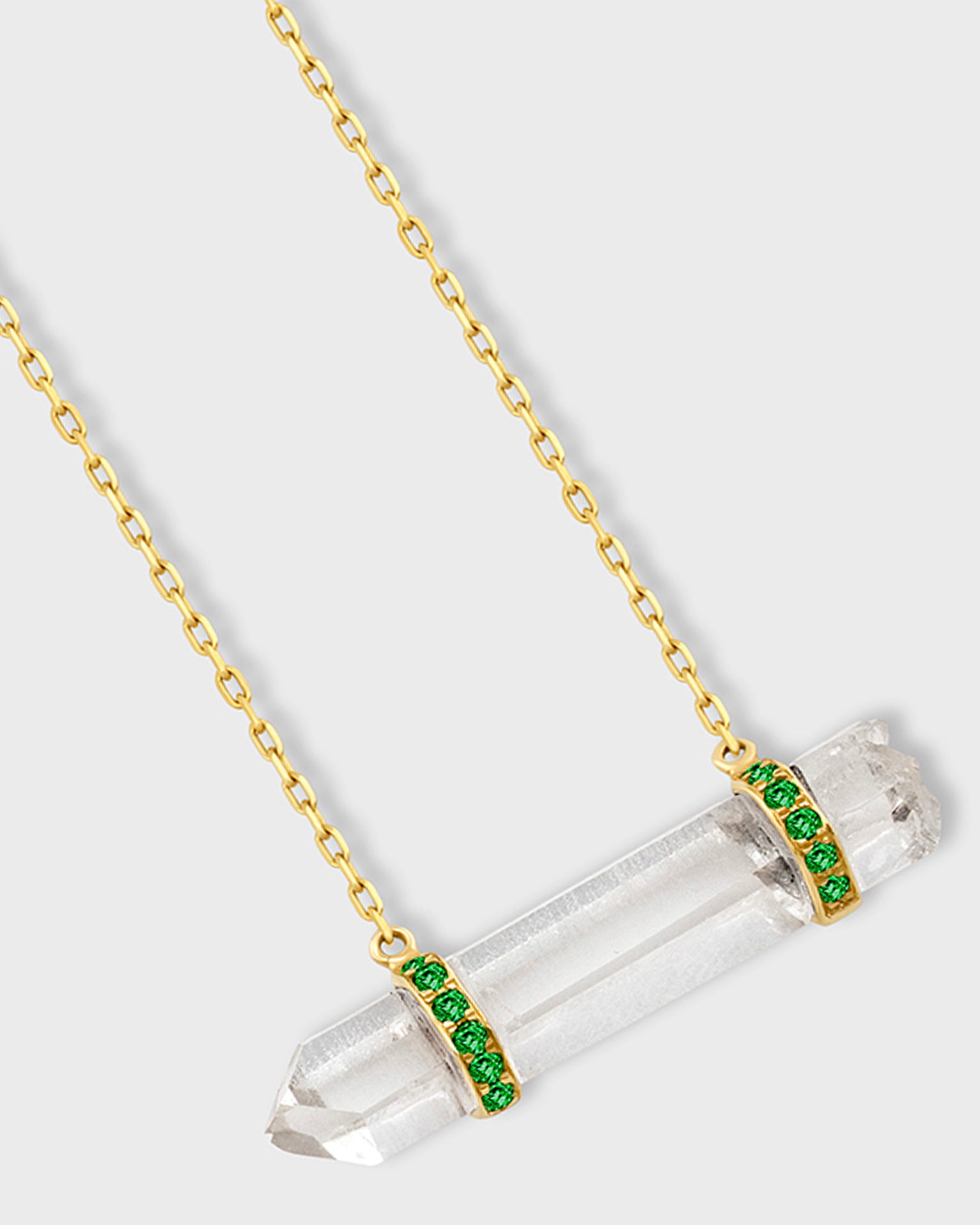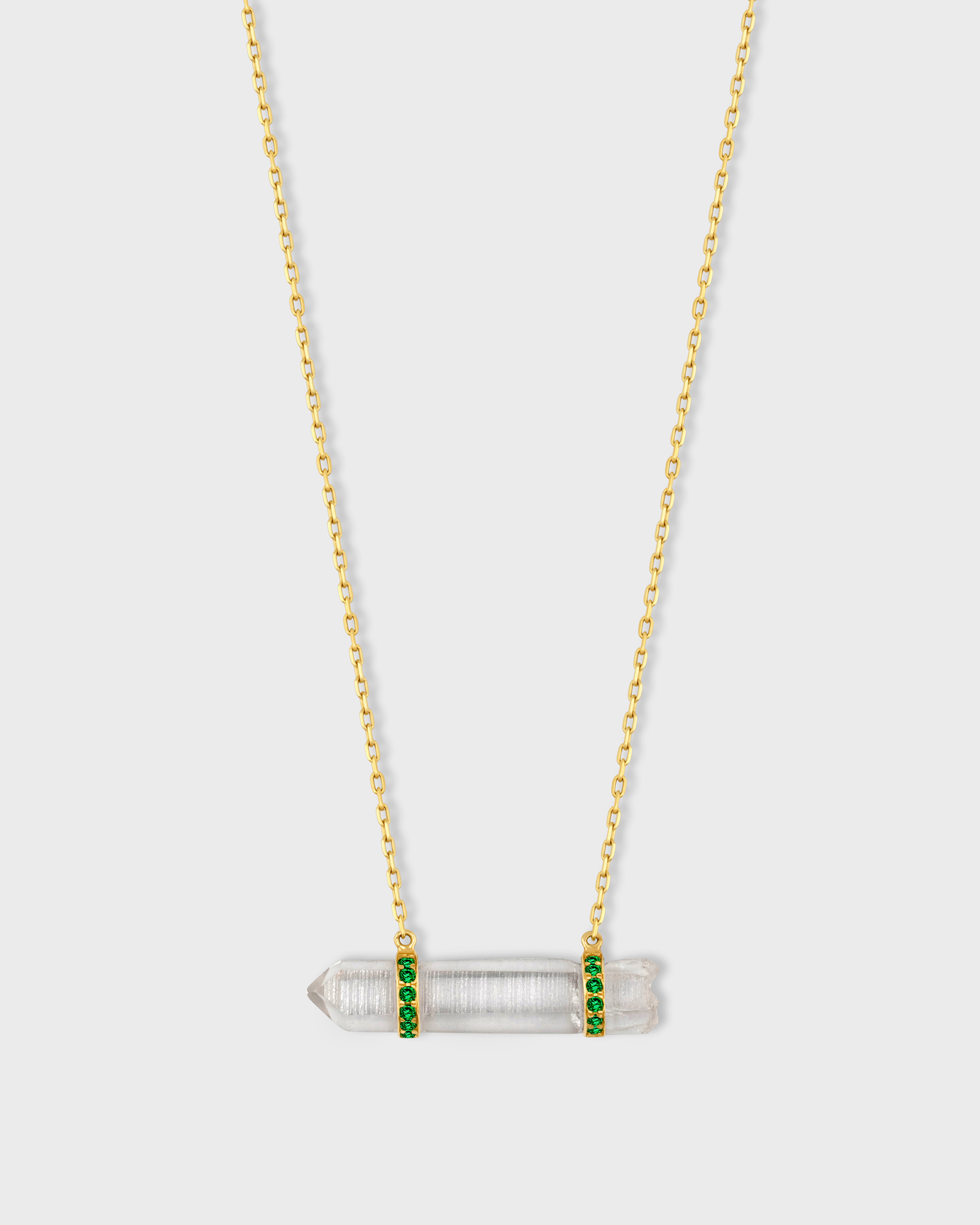 Crystalline Crystal Quartz Emerald Double Bar Necklace