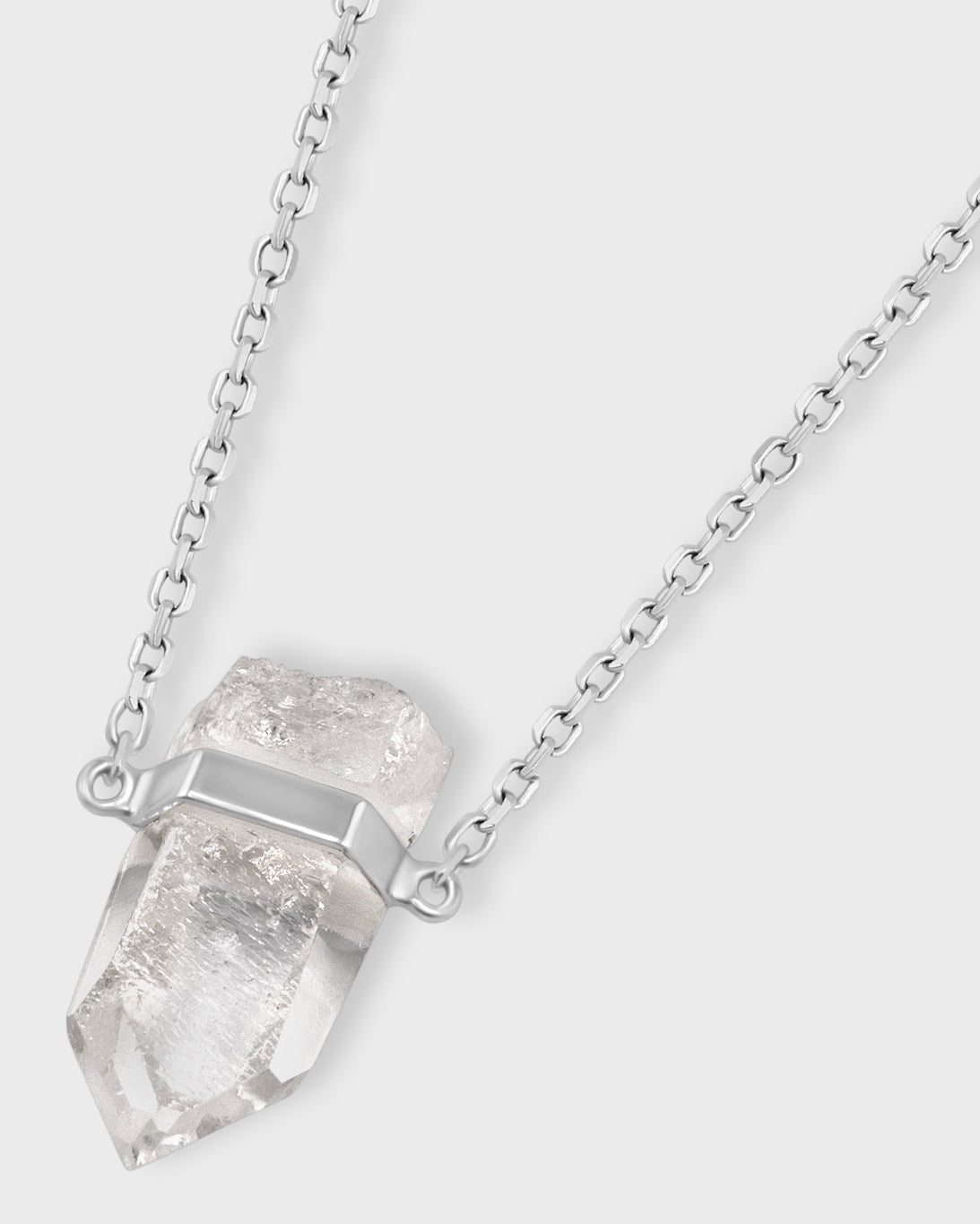 Master of all healing crystals, our clear crystal quartz is custom hand set to the natural shape of the stone in 14 karat white gold on Italian gold chain. Truly one of a kind piece, created to attune to the vibration of each individual wearer.