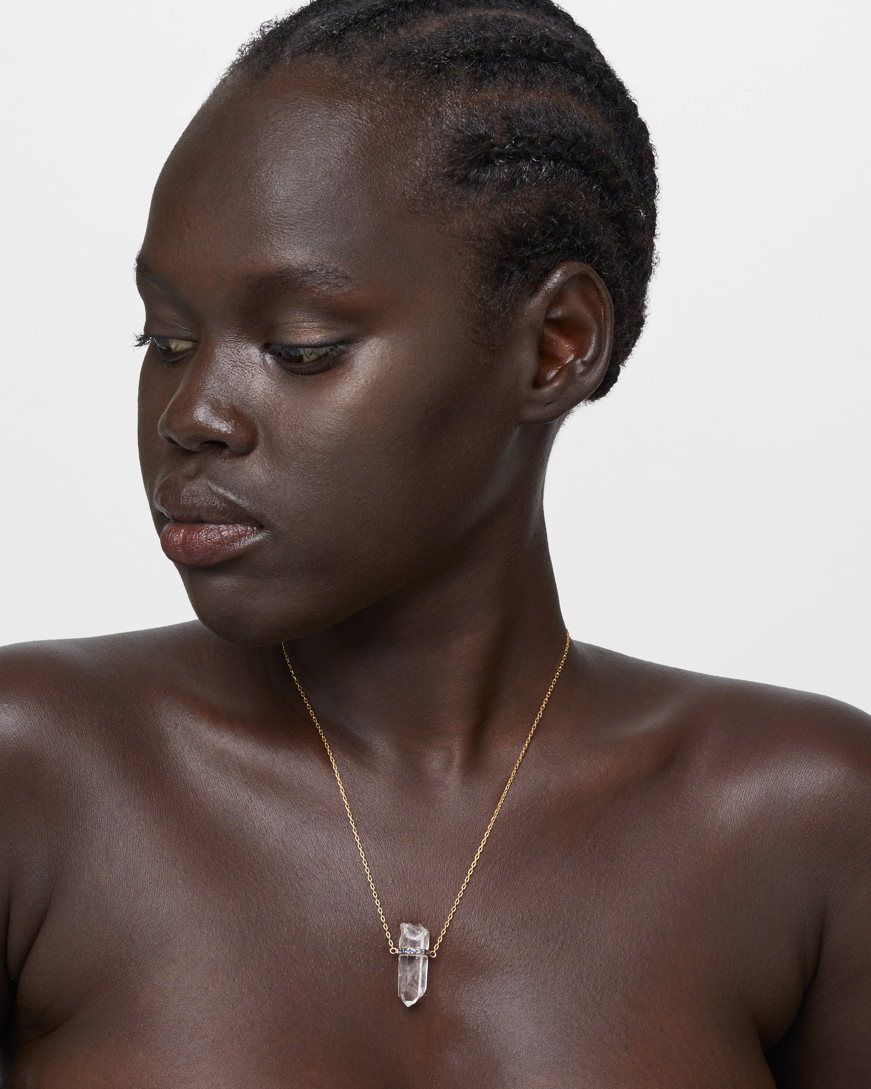Our Crystal Quartz are ethically sourced from our mines from Arkansas, United States. Considered earth’s crystal vortex it is a powerful intersection of natural electromagnetic energy. Our mines have been documented to house the most flawless and energetically vibrational rock crystals ever discovered. Dating back 300 million years, the crystals are infused with ancient vibrational information as its been in the earth to the moment it reaches the wearer. Each crystal is one of a kind, unpolished, uncut, with natural clarity and shapes.