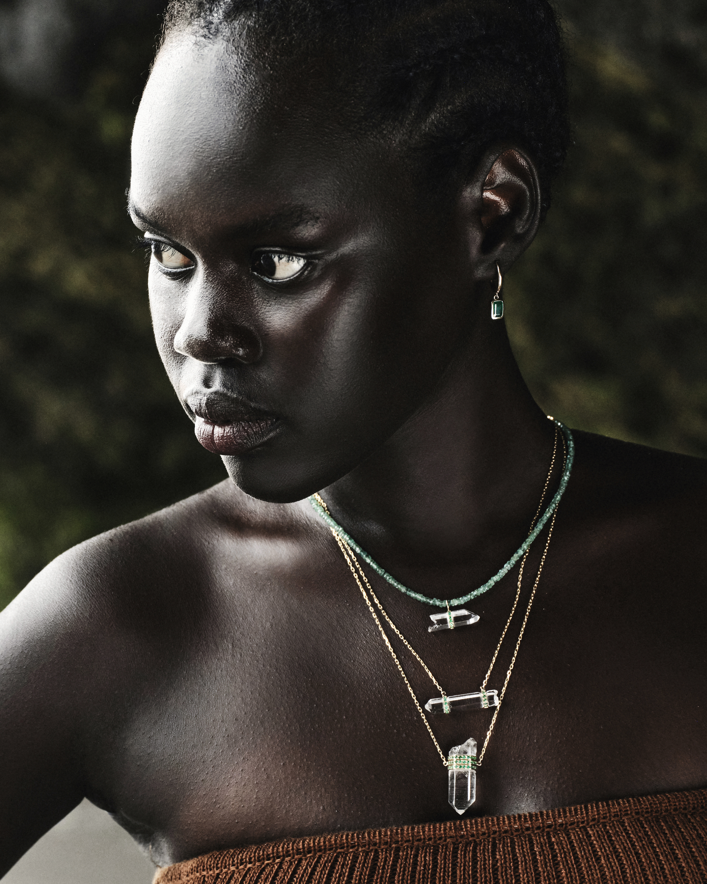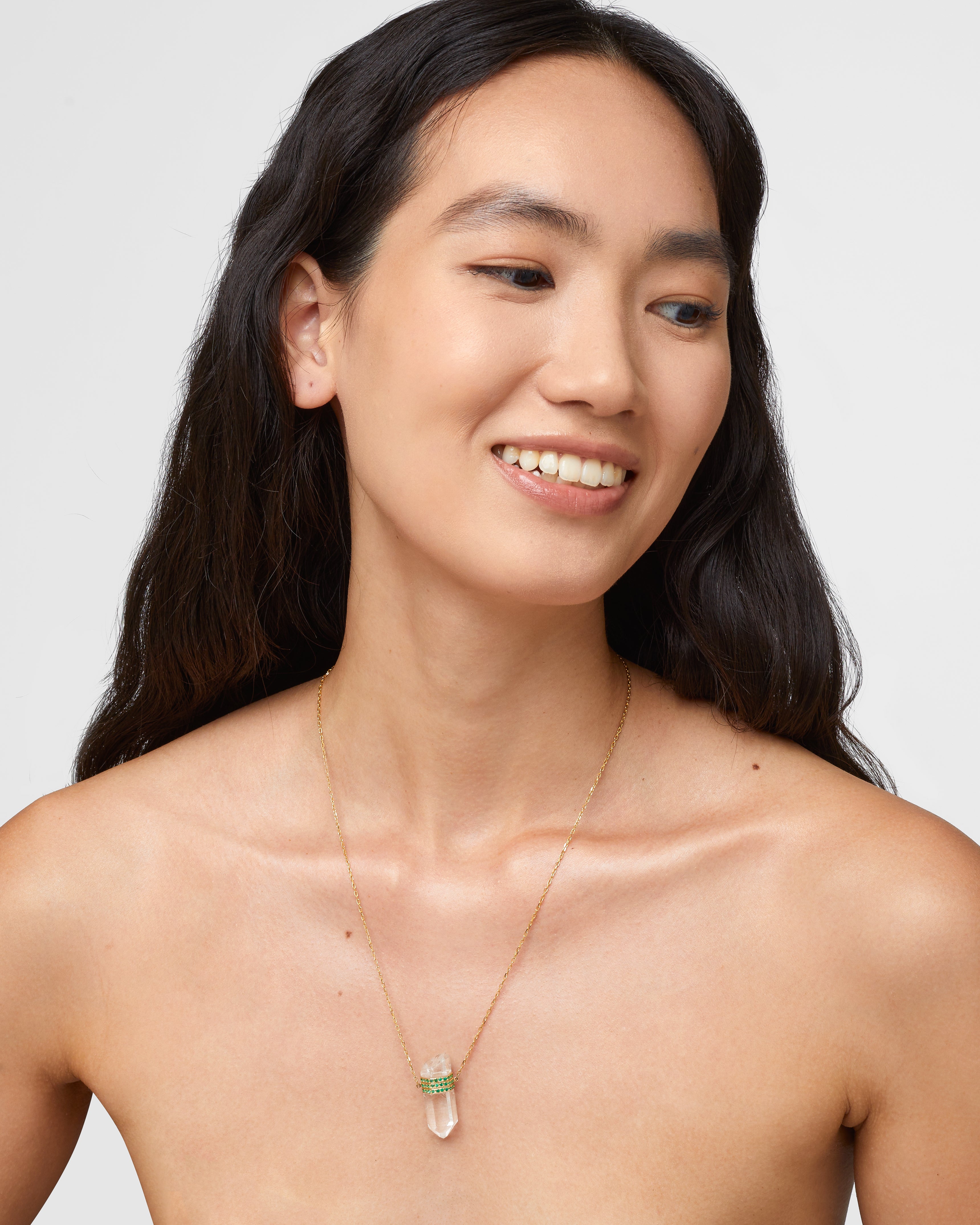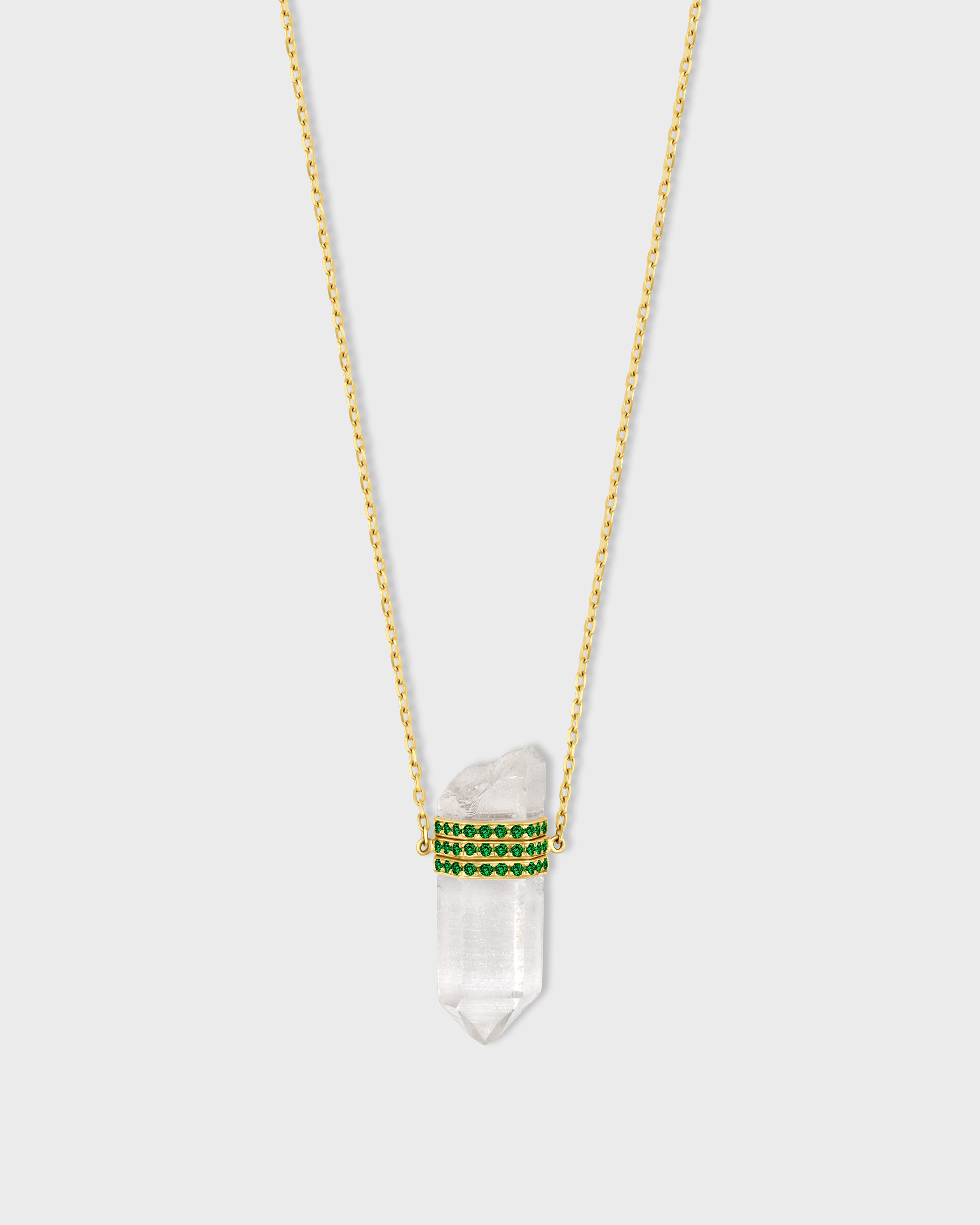Crystalline Crystal Quartz Triple Emerald Bar Necklace