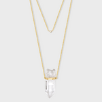 Crystalline Double Layer Crystal Quartz Diamond Bezel Necklace