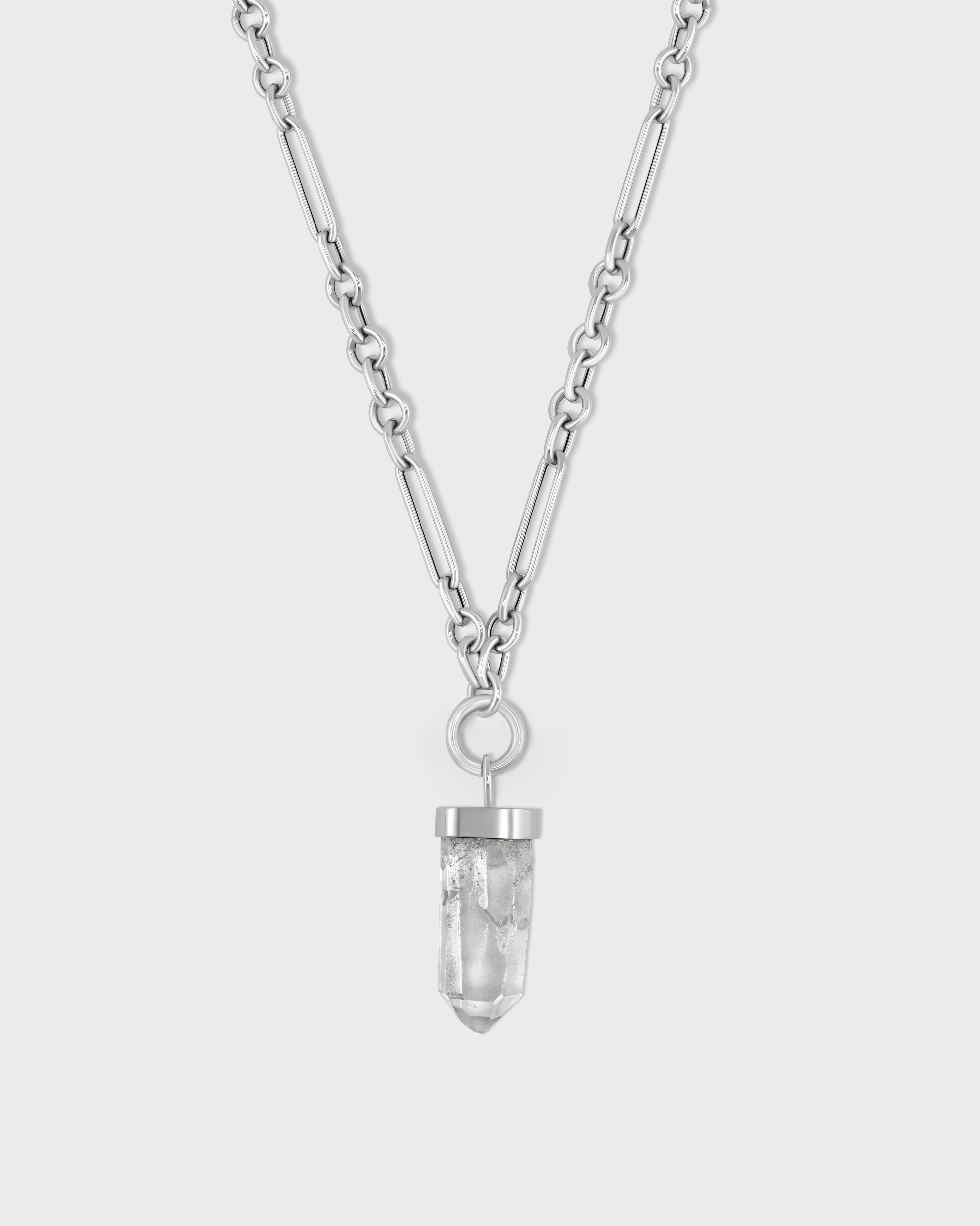 A statement piece with a one of a kind crystal ready to attune to the vibration of each individual wearer. The crystal quartz charm is detachable to the necklace - it is connected with the white gold link. Wear this necklace on its own, with your crystal, or other charms.