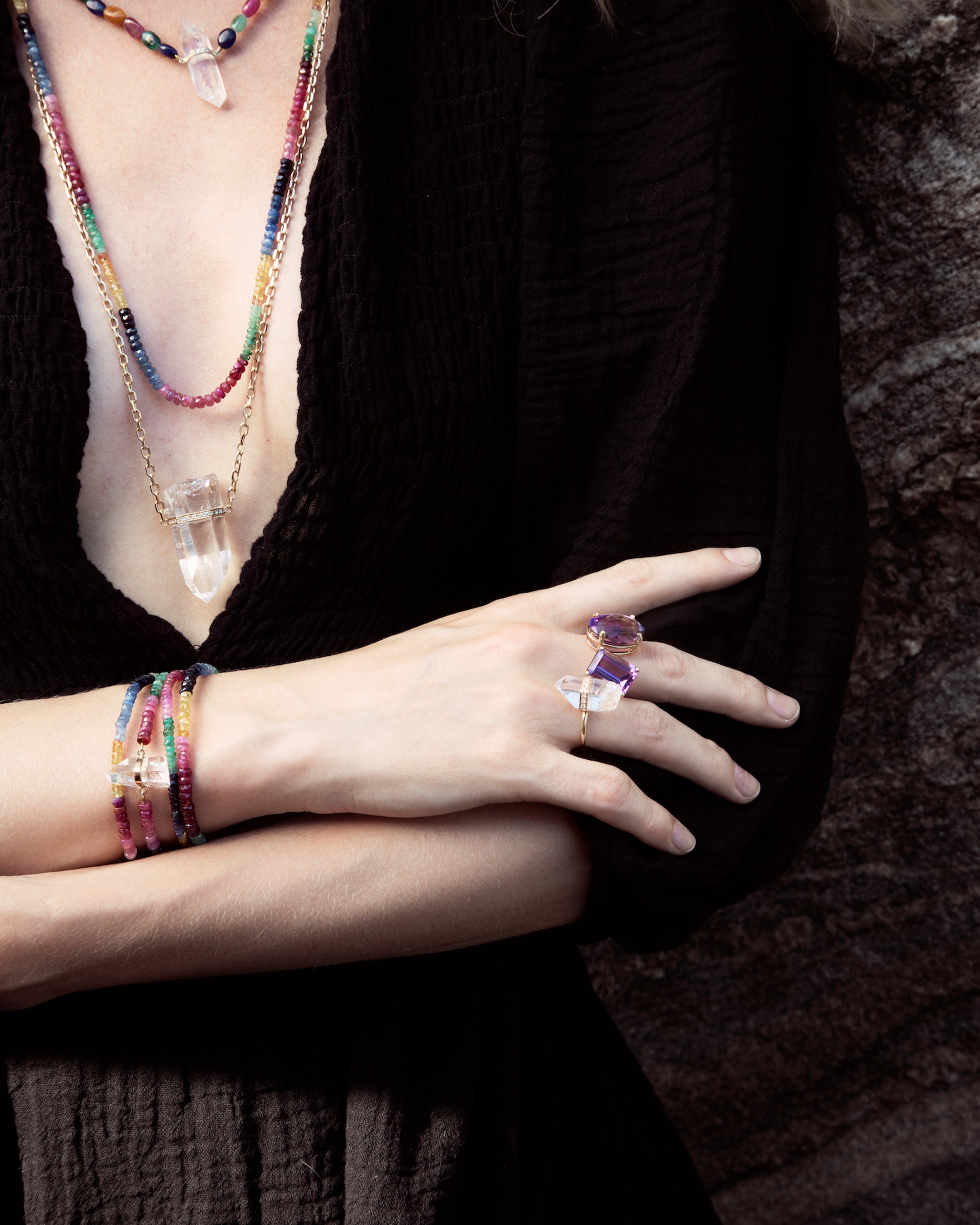 Each beaded jewelry piece is hand strung from the highest quality materials that are cut from natural mineral sources. They are sensitive to prolonged exposure to hairsprays and scents. To ensure longevity please be gentle and avoid tugging and pulling of these pieces.