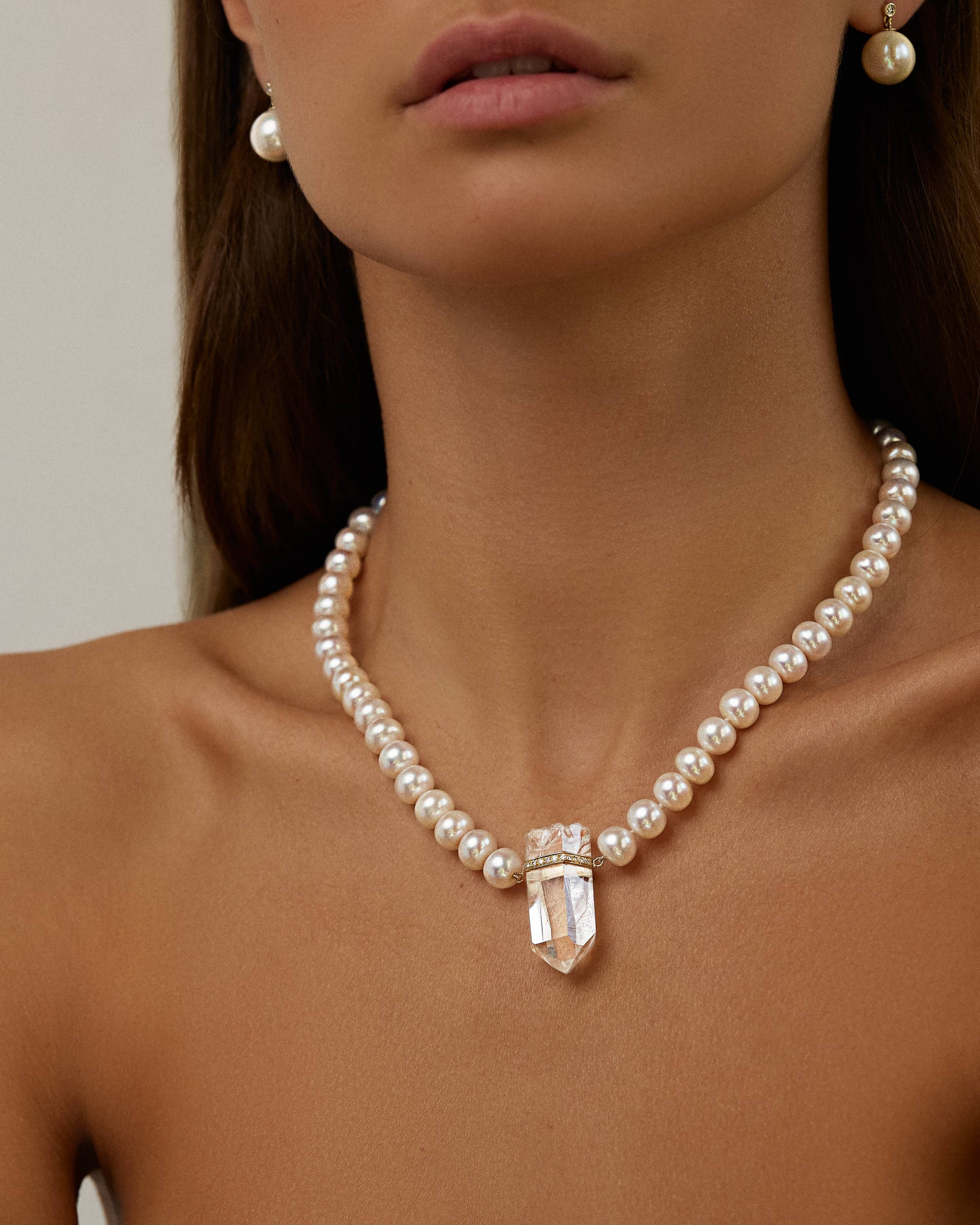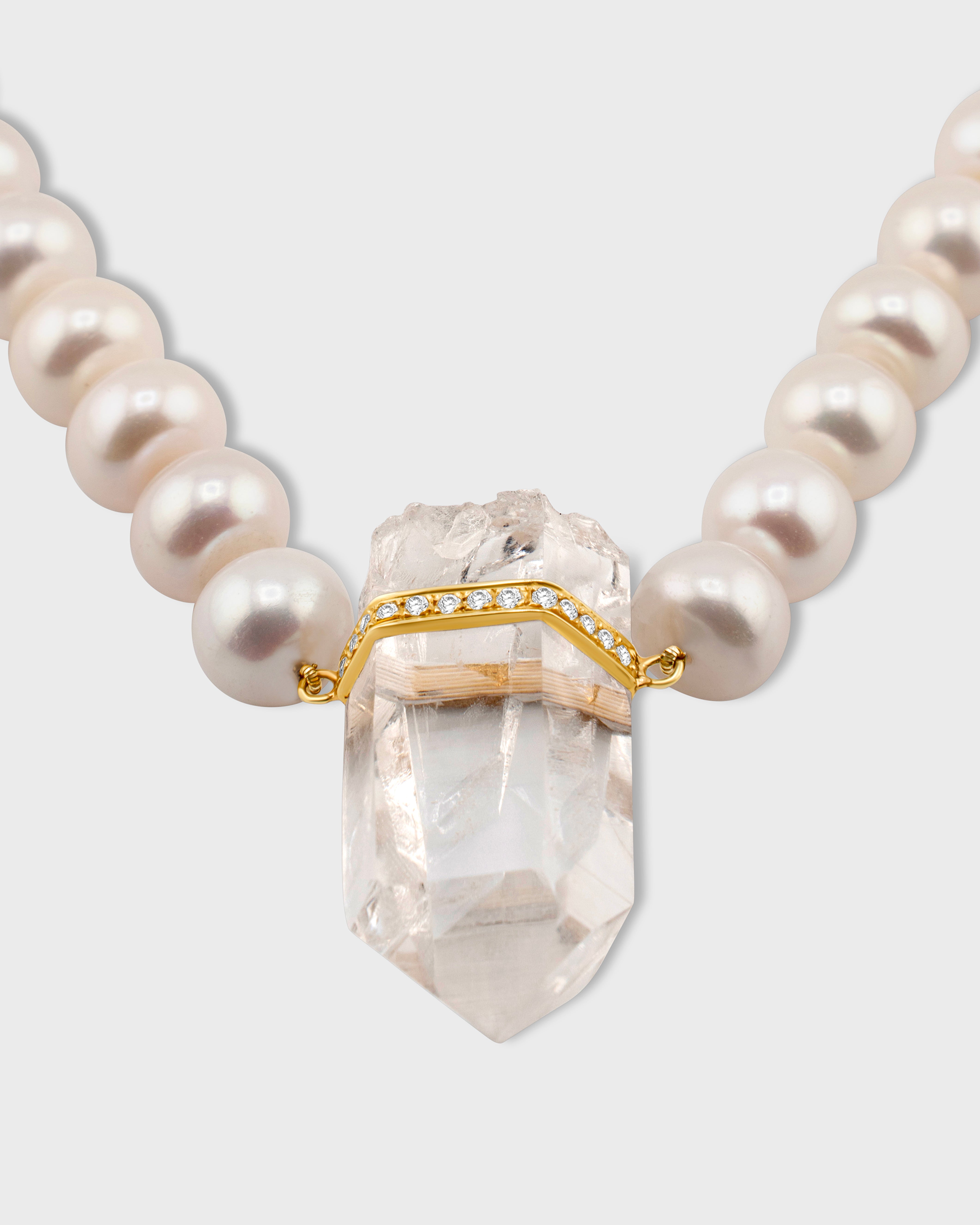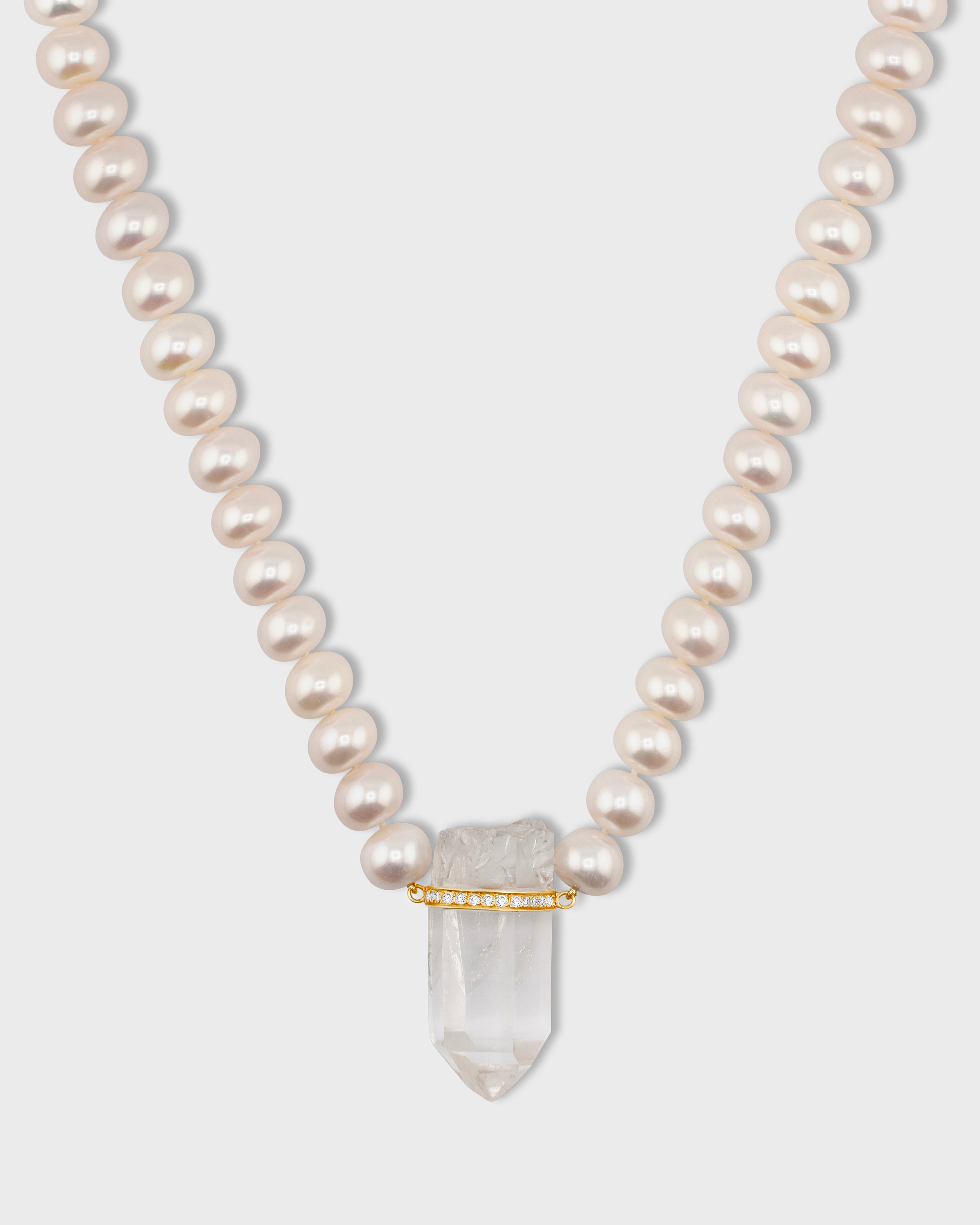 Ocean Jumbo Diamond Crystal Quartz Pearl Necklace