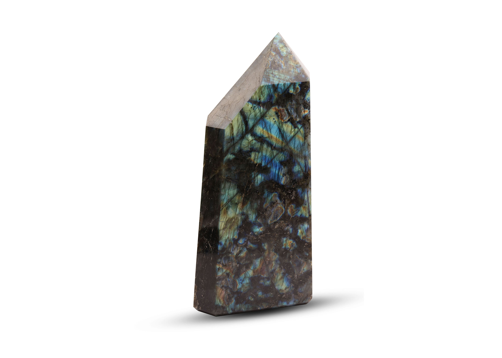 Labradorite is a member of the Feldspar family and is treasured for its remarkable play of color, known as labradorescence. It is considered, Stone of Magic, a crystal of shamans, diviners, healers, and all who travel and embrace the universe seeking knowledge and guidance.