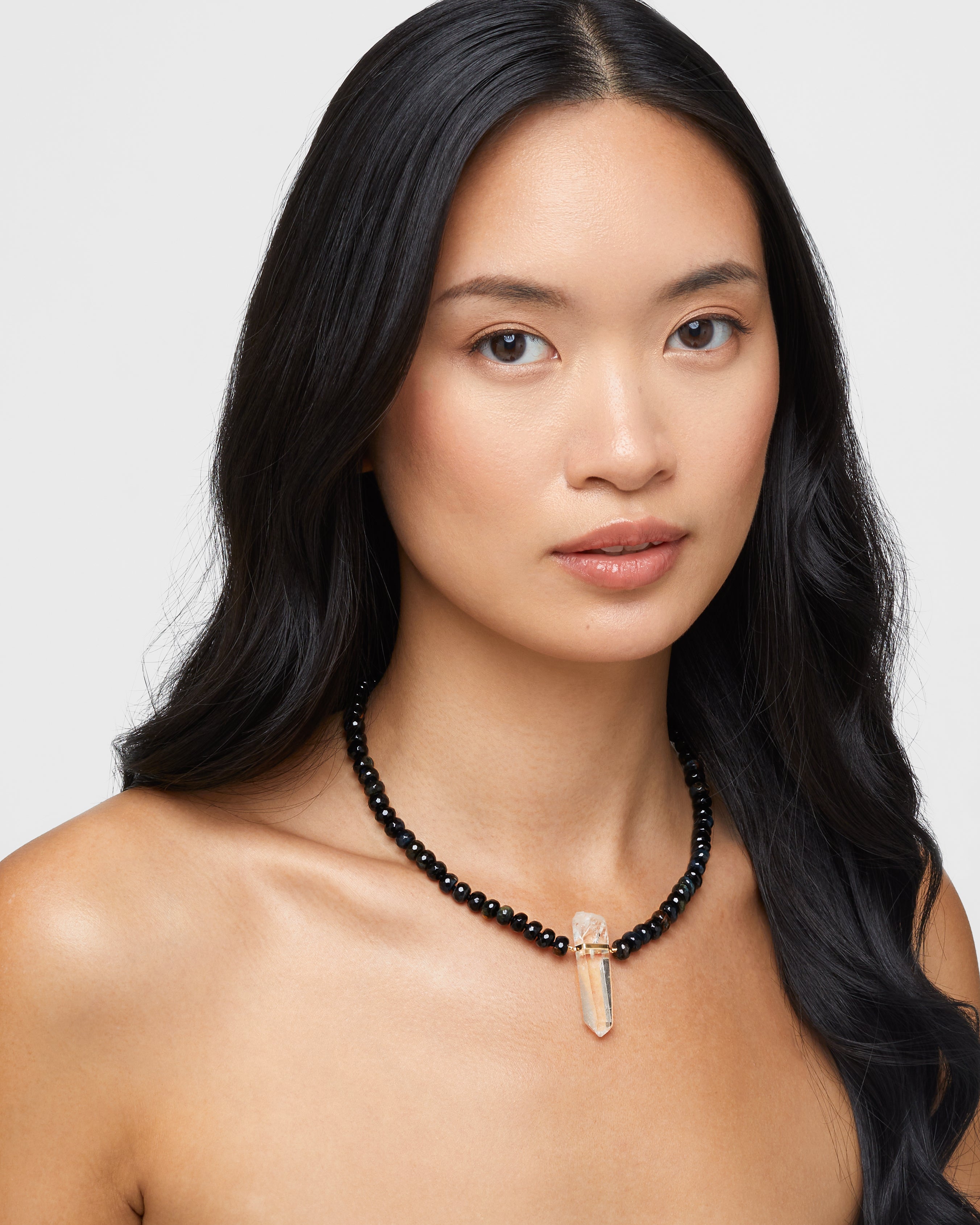 Each beaded jewelry piece is hand strung from the highest quality materials that are cut from natural mineral sources. They are sensitive to prolonged exposure to hairsprays and scents. To ensure longevity please be gentle and avoid tugging and pulling of these pieces.