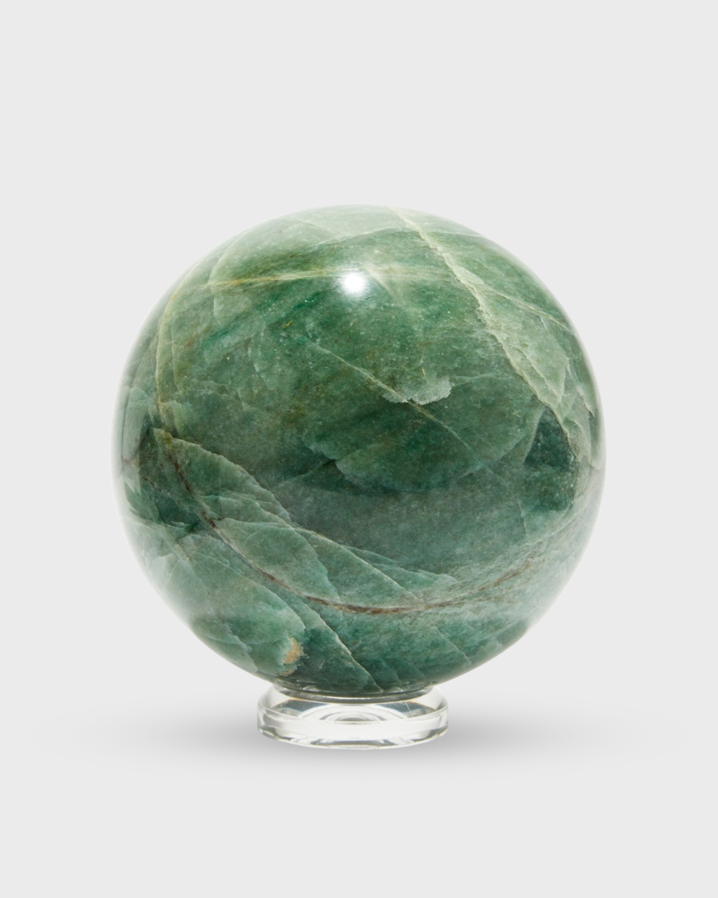 Soft shades of verdant green flow through this Aventurine sphere, a symbol of renewal and optimism. Its smooth, luminous surface brings a sense of calm vitality and natural abundance to any space.