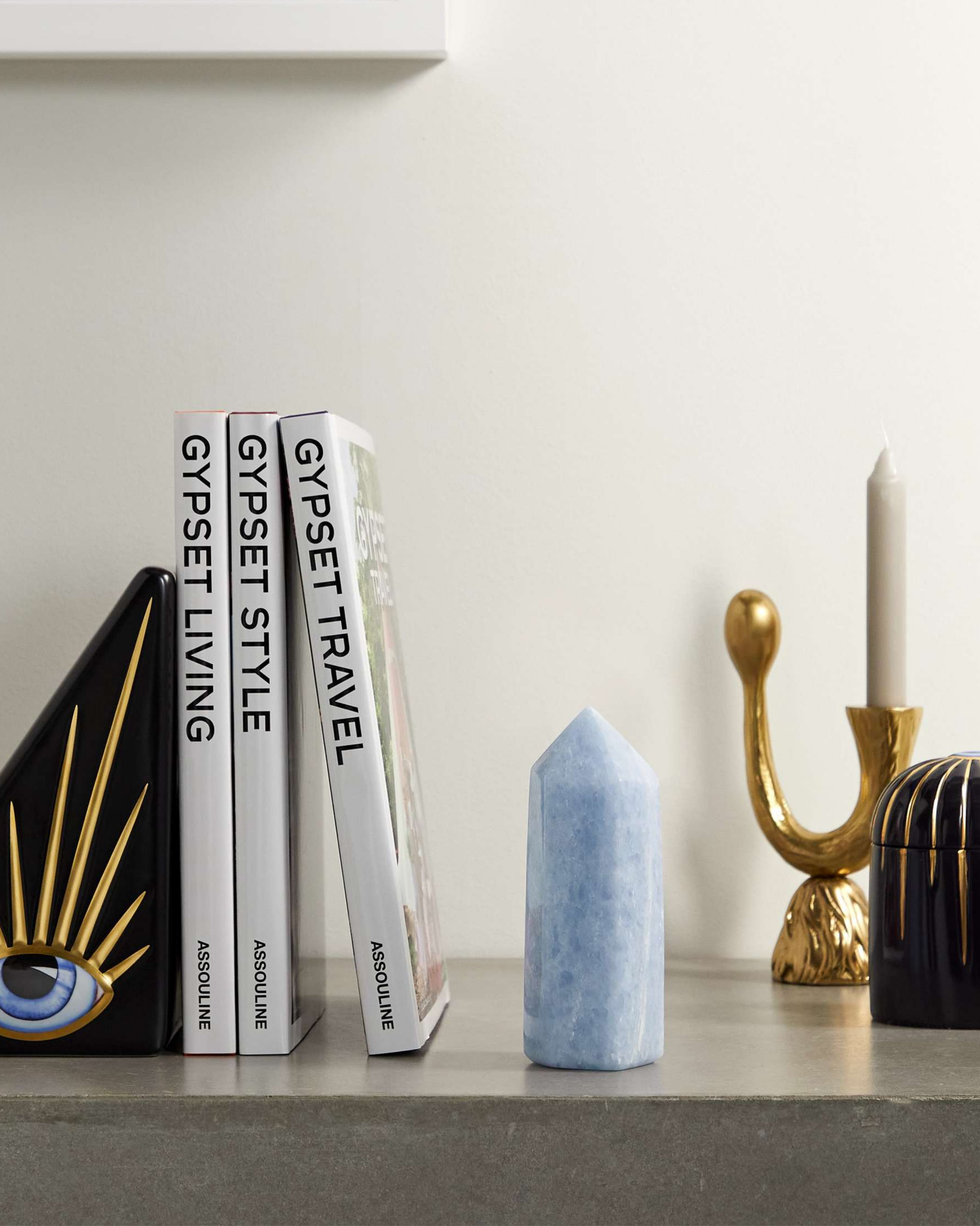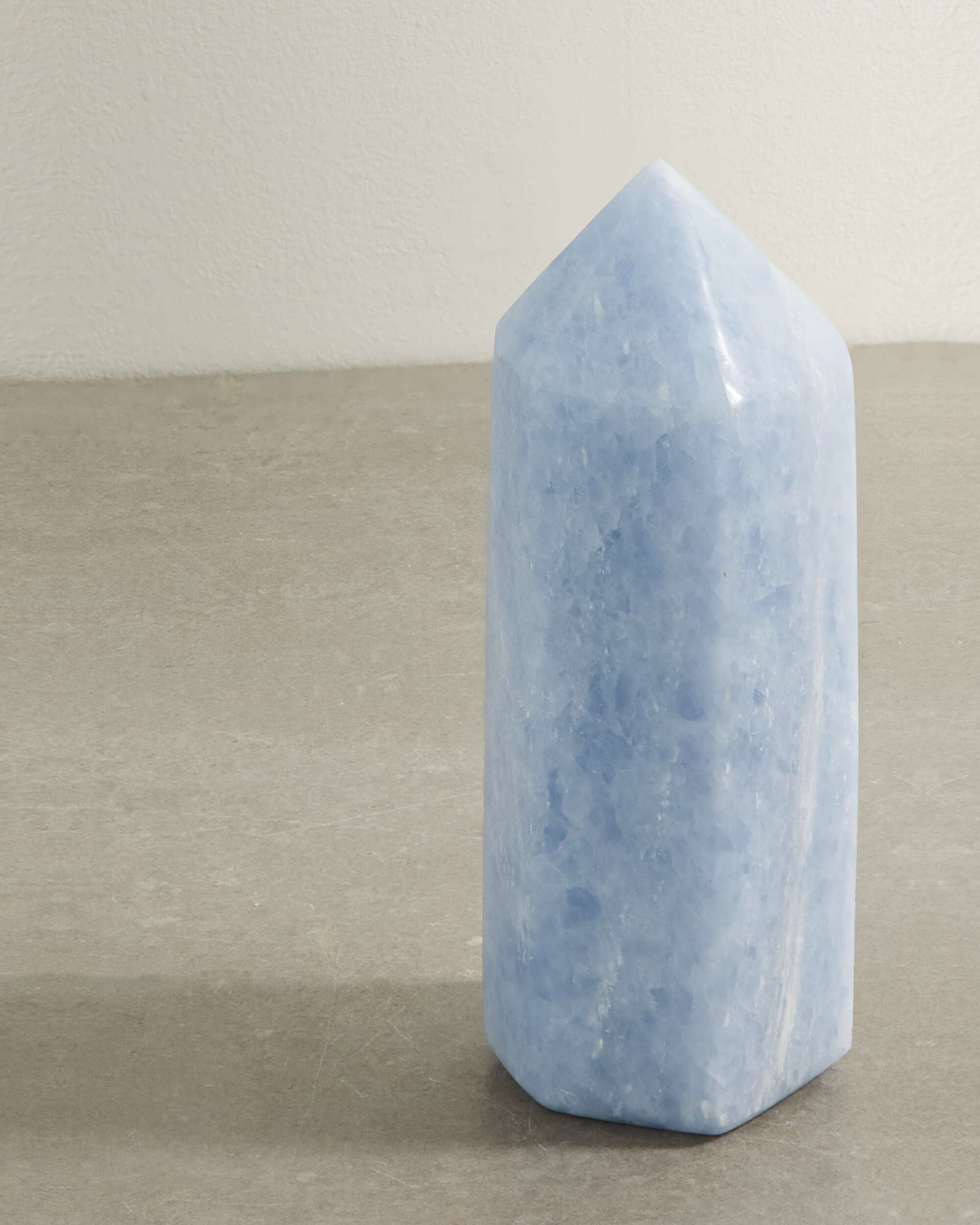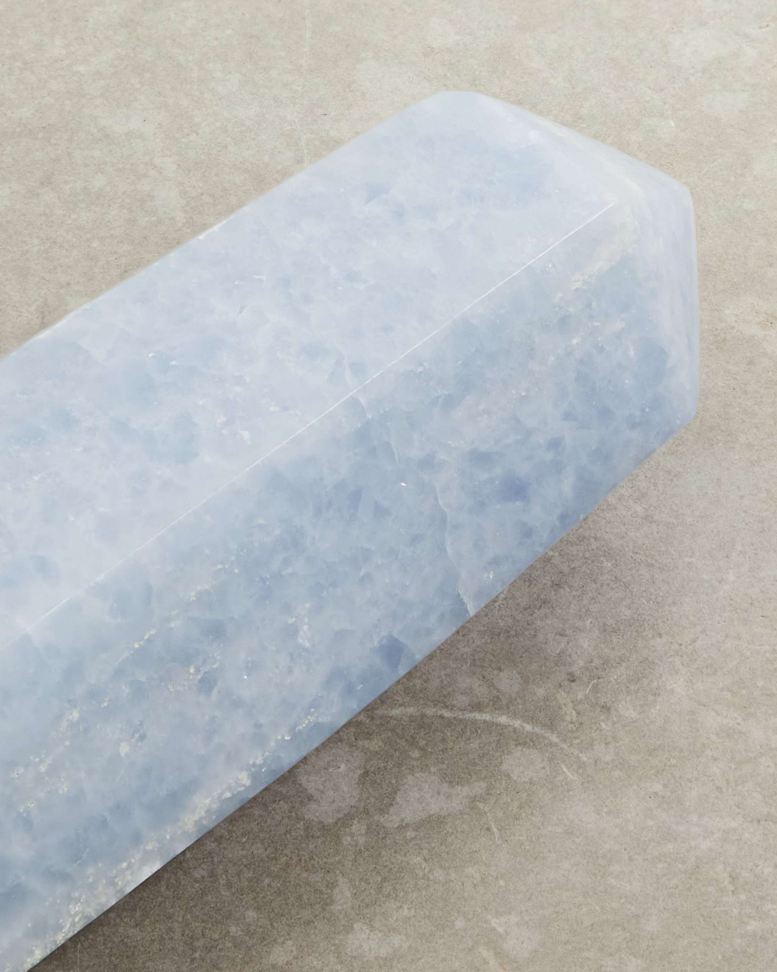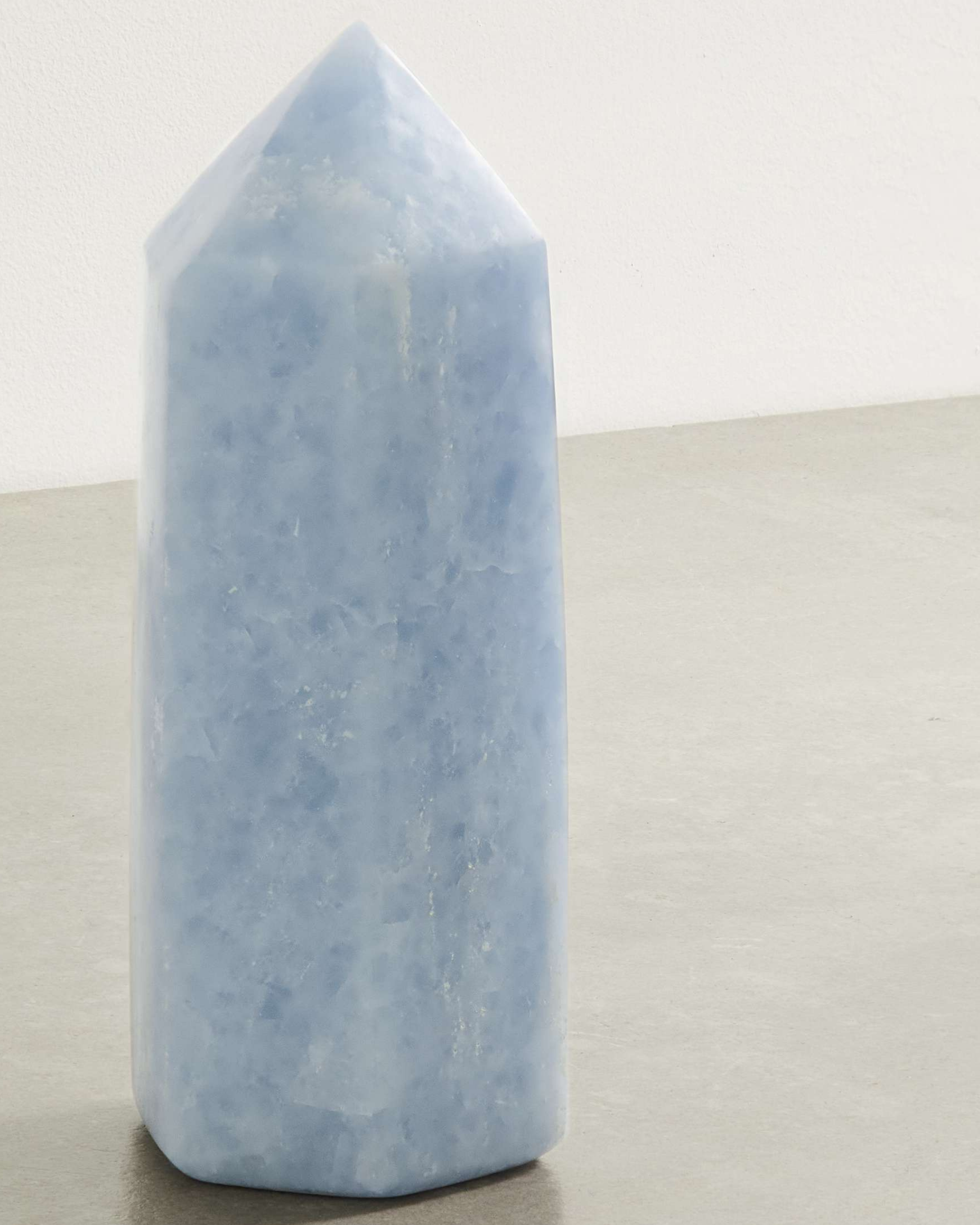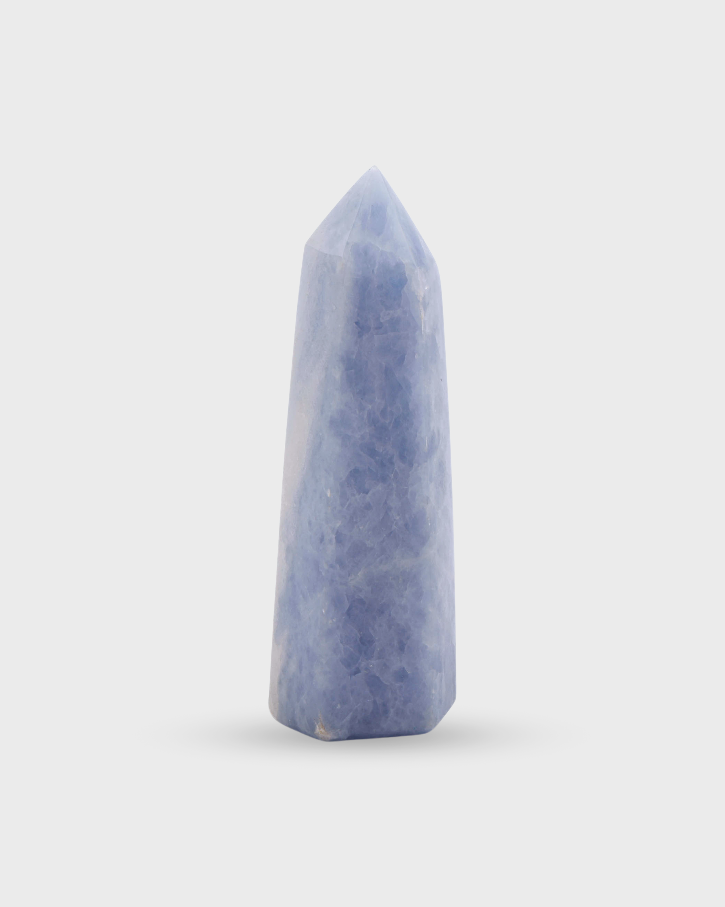 Our hand-carved and polished natural blue calcite tower is the perfect addition to any space in your home. Blue calcite is known as the stone of the mind and can help encourage feelings of peacefulness and tranquility.