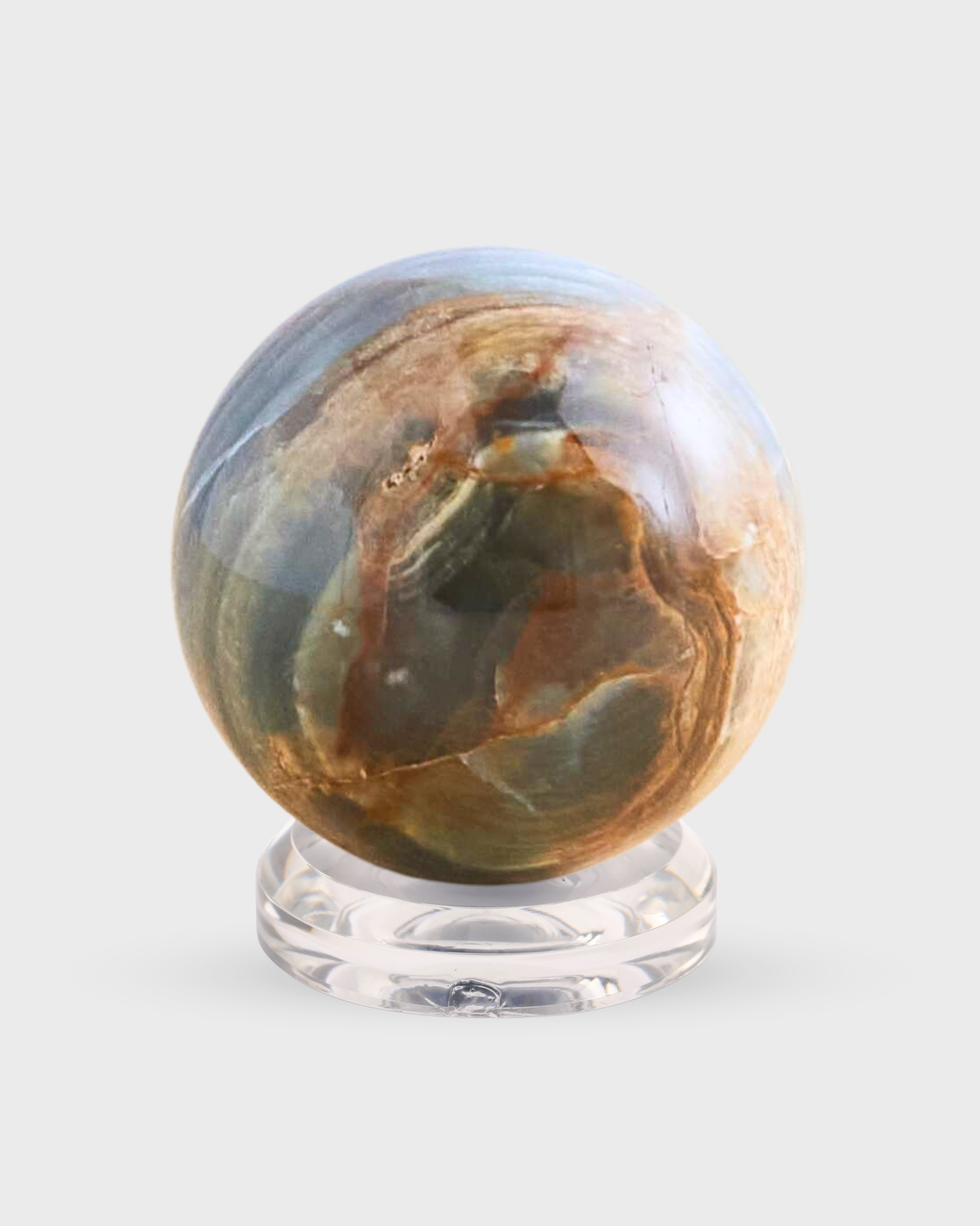 The Onyx Sphere showcases the mesmerizing beauty of natural onyx with its smooth, polished surface and intricate banding. Known for grounding energy, this sphere adds a touch of elegance to your home while promoting balance and stability. Place it in any space to create a sense of calm and harmony.