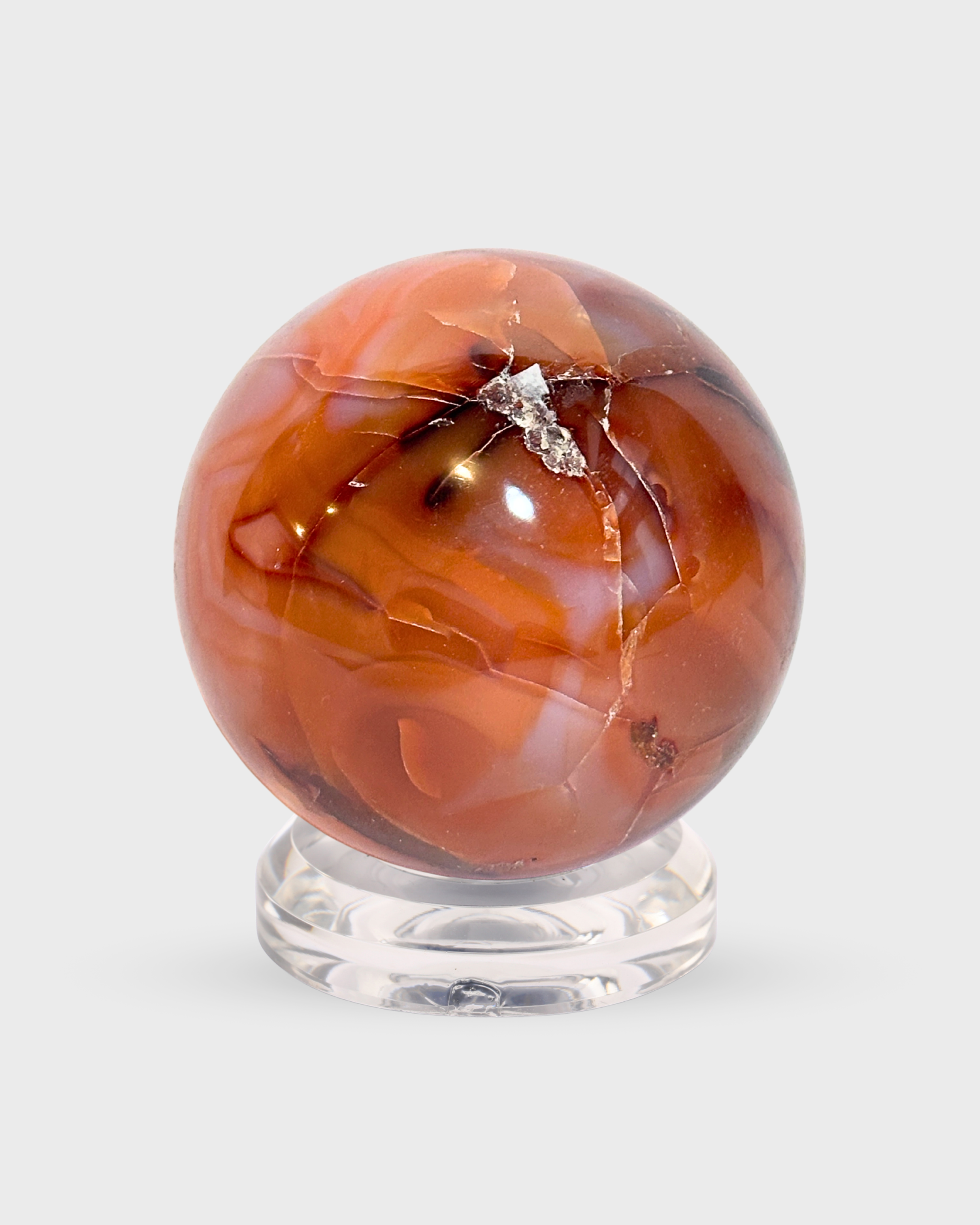 Glowing with fiery orange and amber tones, this Carnelian sphere radiates vitality and creativity. A lively accent that energizes the spirit.