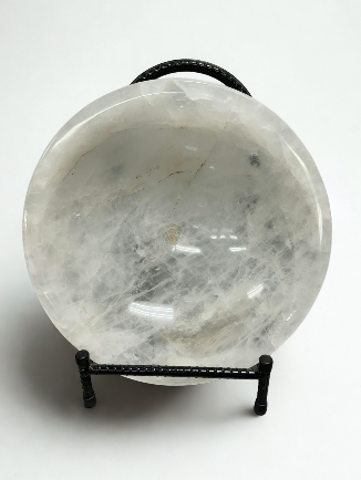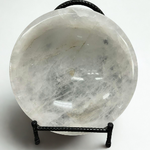 Hand-carved from luminous selenite, this round bowl glows with ethereal clarity and soft white translucence. Known for its cleansing and purifying energy, it’s perfect for displaying crystals, jewelry, or sacred objects while inviting peace, light, and spiritual renewal into any space.