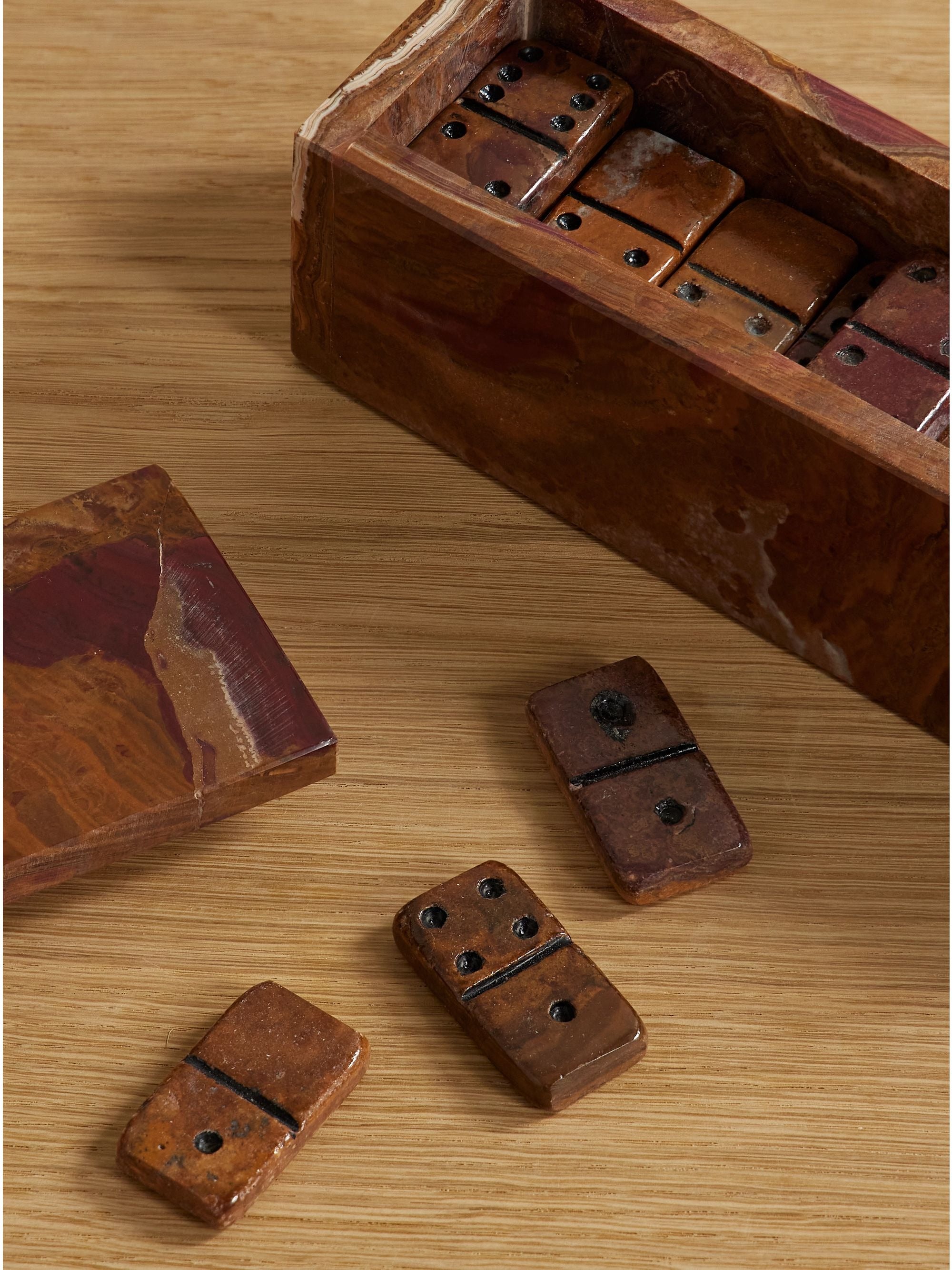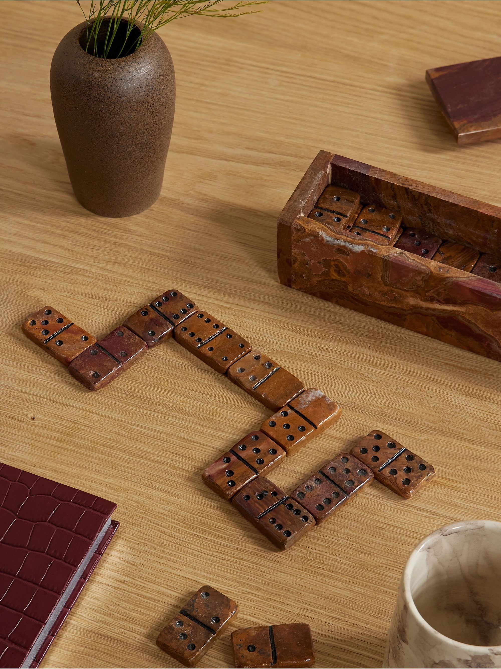 Playtime, elevated—our Brown Onyx Domino Set brings grounding energy and timeless style to your space. Hand-carved from richly veined onyx, each tile is a tactile reminder of nature’s strength and artistry. A functional work of design, it doubles as decor and sparks joy through meaningful connection.