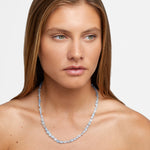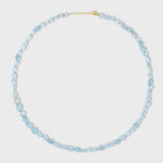 Aquamarine pebbles hand strung in New York City and finished in 14 karat yellow gold.