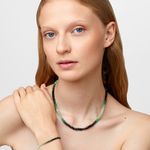 Our jumbo Arizona emerald necklace with 14 karat gold chain. Beads are at 5mm to give it an impactful look in a classic green. Perfect to wear on its own or multiples for a statement.
