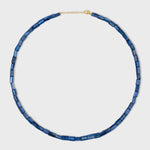 Geometrically carved jumbo kyanite hand strung in the heart of New York City and finished with 14 karat yellow gold.