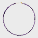 Natural jumbo amethyst crystal beads hand strung in New York City and finished with 14 karat yellow gold.