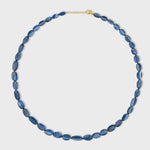 Featuring smooth, oval kyanite gemstones, this necklace captures the stone's calming energy and natural blue color. Its serene, understated design makes it a perfect accessory for bringing peace and balance to your look.