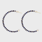 Arizona Large Blue Sapphire Pearl Gold Bead Hoop Earrings