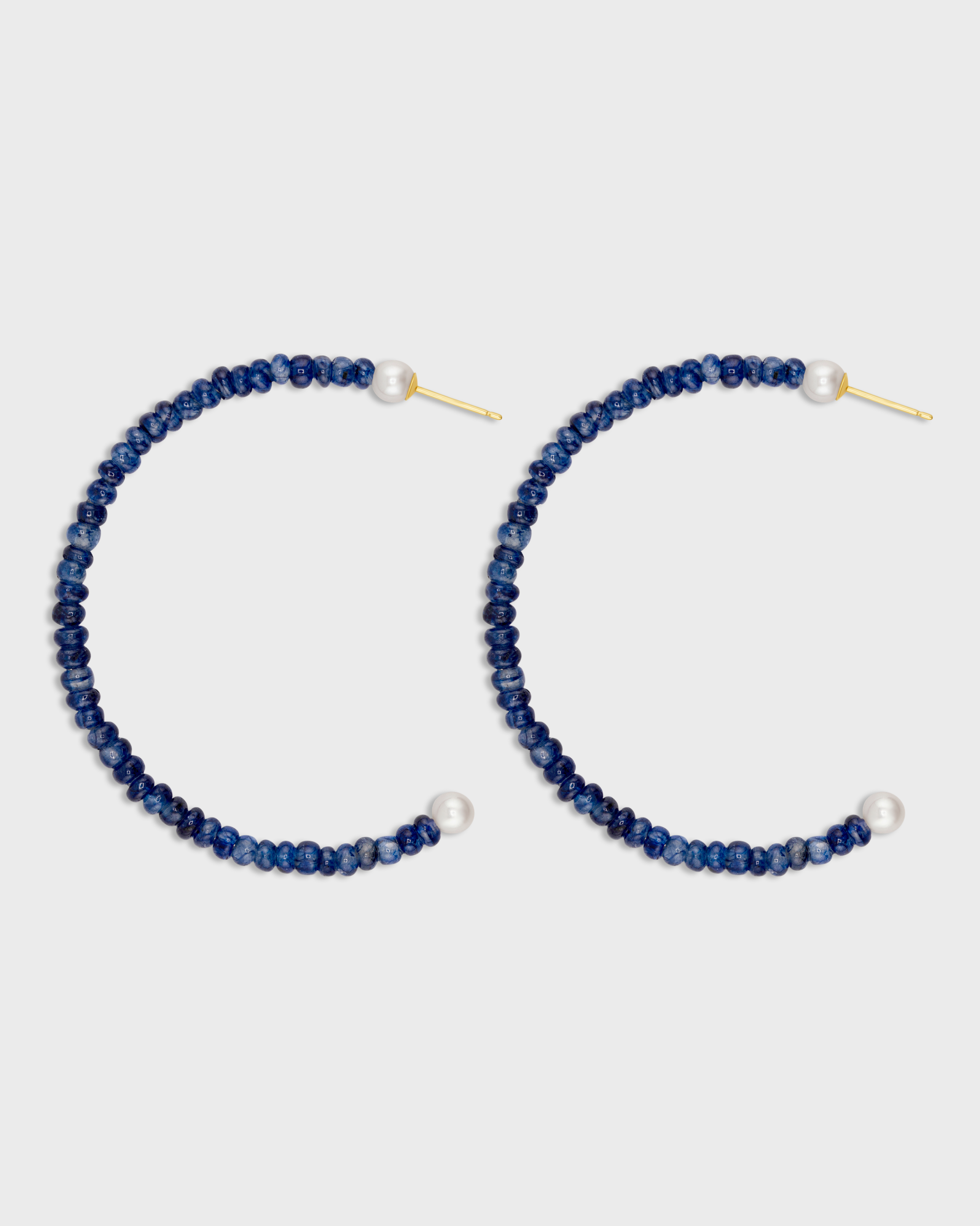 Arizona Large Blue Sapphire Pearl Hoop Earrings