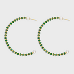 Arizona Large Emerald Pearl Gold Bead Hoop Earrings