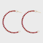 Arizona Large Ruby Pearl Gold Bead Hoop Earrings