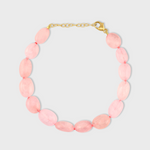 This stunning bracelet features a strand of large, oval-shaped Morganite gemstones, each one showcasing the stone's beautiful pink hue. The gemstones are strung together with 14k gold-filled wire, creating a delicate yet eye-catching piece.