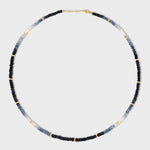 Blue Sapphire ombre necklace with mini gold beads for all year round. Wear on its own or layer with all your favorite necklaces.