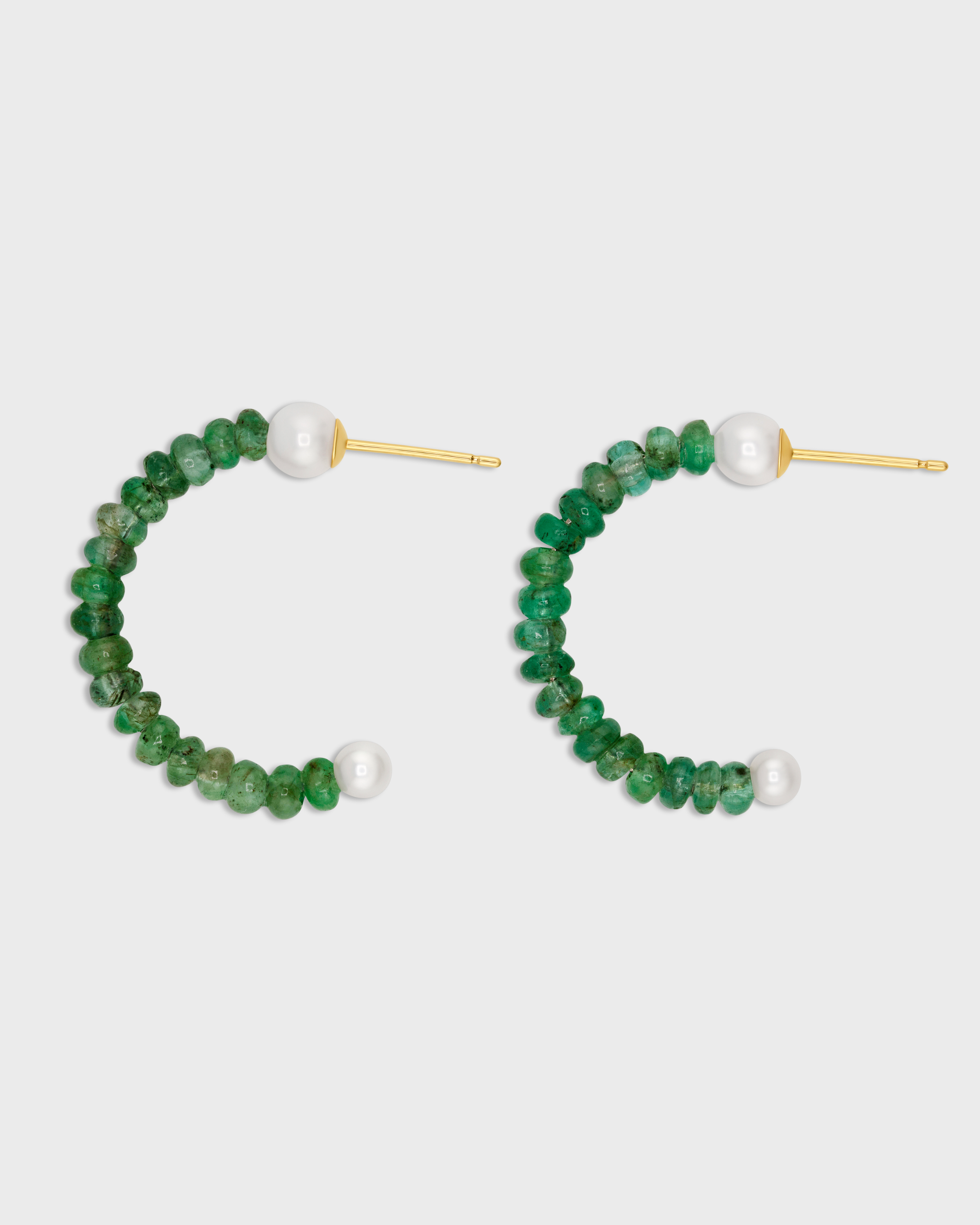 These earrings feature a lovely arrangement of small blue sapphire beads, forming an elegant hoop with a polished pearl on each end. The blue beads, adding a touch of luxury, while the pearls on the tips bring a classic element to the design.