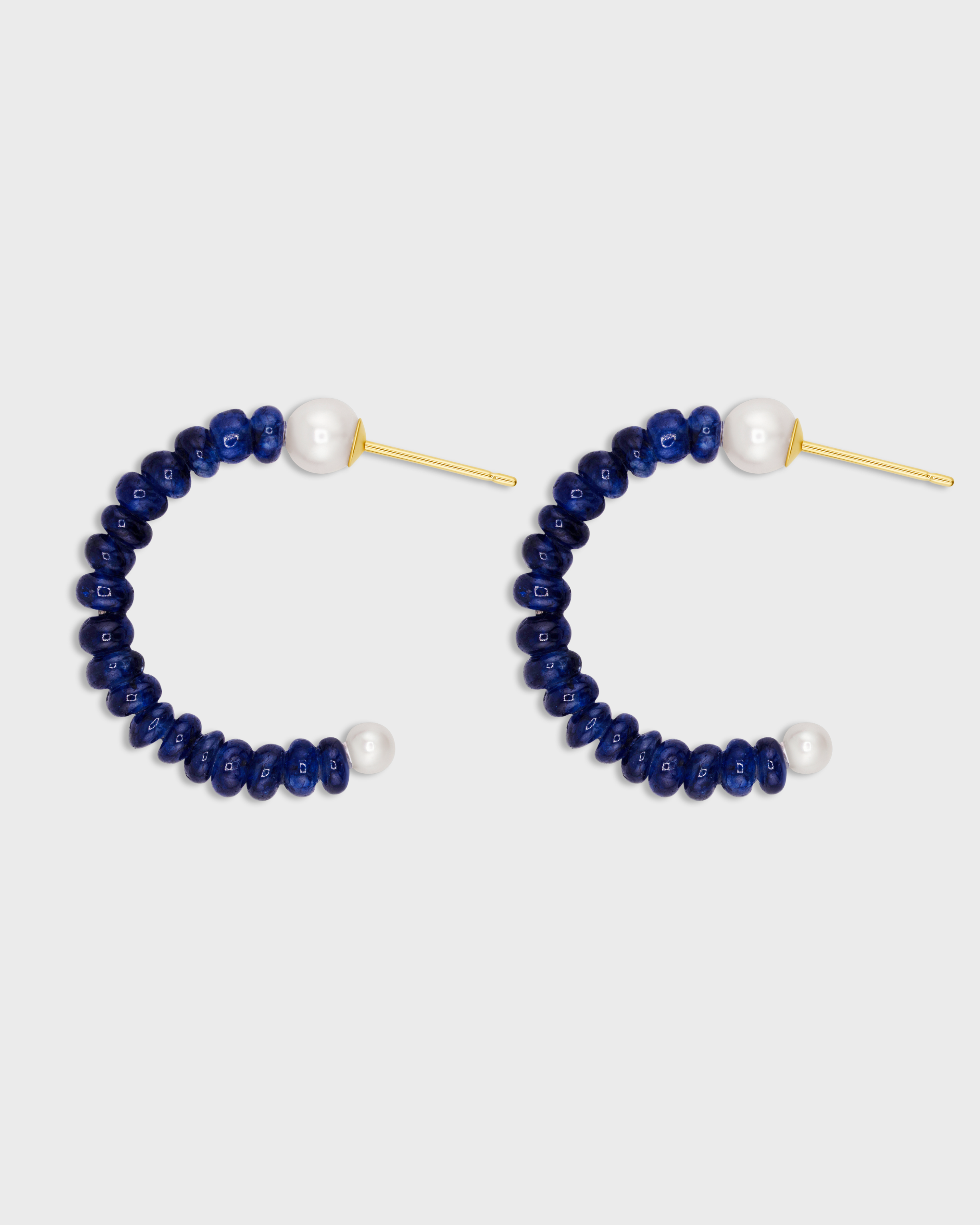 Arizona Small Blue Sapphire Pearl Hoop Earrings