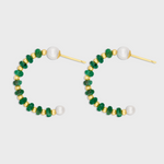 Arizona Small Emerald Pearl Gold Bead Hoop Earrings