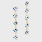 These stunning Chakra Blue Topaz Heart Dangle Earrings feature an array of delicate heart-shaped blue topaz gemstones, elegantly suspended in a gold setting. The cascading design creates a beautiful movement that enhances their striking clarity and color.