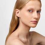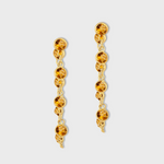 Stunning gold bezel citrine dangle drop earrings that can be worn in multiple ways. Worn long and worn wrapped. Beautiful on its own or layered with other earrings for an ear stack.