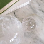 This beautifully polished Crystal Quartz Sphere is a timeless addition to any home. Larger spheres are rare in such clarity, and you may even catch a glimpse of a rainbow within the crystal. Its clear, reflective surface enhances light and energy, making it perfect for those who appreciate the elegance and power of natural crystals.