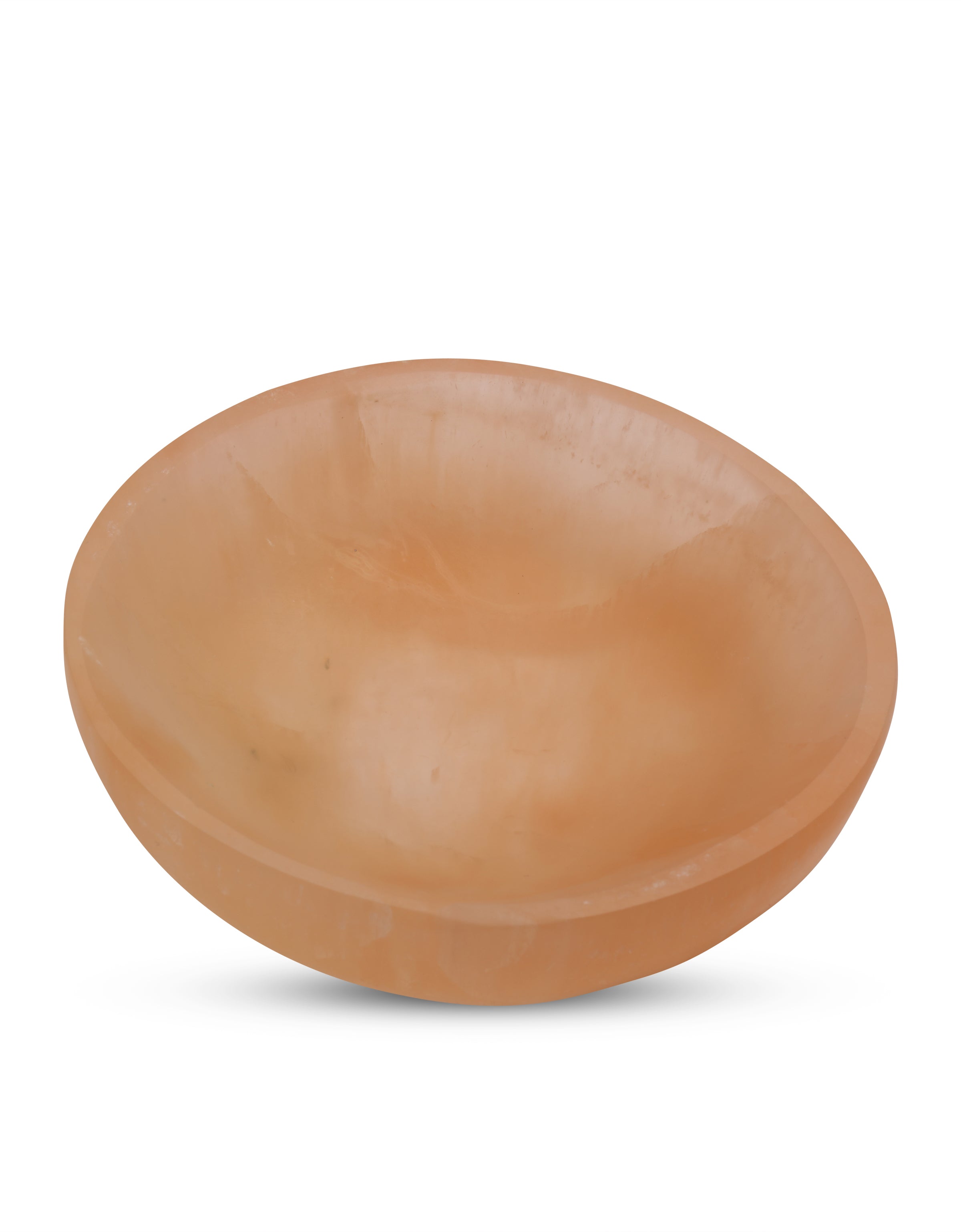 Carved from soft peach selenite, this luminous bowl exudes calming and cleansing energy. Its gentle glow brings warmth and serenity to any space, ideal for displaying crystals, jewelry, or treasured objects while promoting peace and emotional clarity.