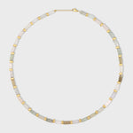 This stunning piece features a delicate array of jade beads in soft, natural hues ranging from creamy white to pale green.