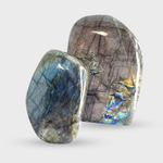 This striking Labradorite Freeform features mesmerizing flashes of color, polished to perfection. Known for its protective and grounding properties, it also enhances spiritual awareness. A captivating addition to any home, its natural shimmer adds a dynamic touch to your decor.