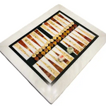 Expertly crafted from rich marble and onyx, this luxurious backgammon set features intricate natural veining and a polished surface — blending timeless artistry with elegant gameplay for a statement piece in any space.