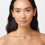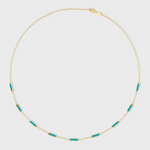 The necklace features a delicate gold chain interspersed with small rectangular turquoise bars, creating a minimalist yet sophisticated look.