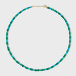 Deep blue & green opals hand strung in New York City and finished with 14 karat yellow gold.