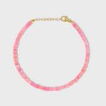 Bright pink opals hand strung in the heart of New York City and finished with 14 karat yellow gold.