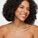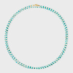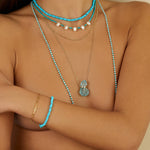 Turquoise & mini freshwater pearls hand strung in the heart of New York City and finished with 14 karat yellow gold.