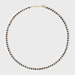 Classic mini pearls combined with smoky quartz gemstones. Hand strung in NYC and finished with 14 karat gold hardware.