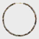 Iridescent crystal Labradorite Necklace that is hand beaded and adorned with 14 karat gold hardware and chain.