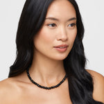 Deep black spinel beads with faceted cuts create a bold and elegant statement in this necklace. Known for its protective and revitalizing energy, it’s a versatile piece for both everyday and formal wear.