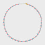 Vibrant pink & blue opals hand strung in New York City and finished with 14 karat yellow gold.