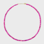 Bright fuchsia large opals faceted cut necklace hand strung in New York City and finished with 14 karat yellow gold.