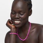 Each beaded jewelry piece is hand strung from the highest quality materials that are cut from natural mineral sources. They are sensitive to prolonged exposure to hairsprays and scents. To ensure longevity please be gentle and avoid tugging and pulling of these pieces.