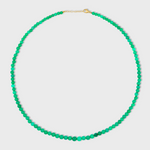 Green sphere opals necklace hand strung in New York City and finished with 14 karat yellow gold.
