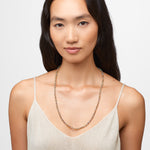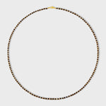 Opals and natural smoky quartz long necklace hand strung in New York City and finished with 14 karat yellow gold.