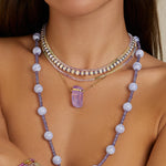 Each beaded jewelry piece is hand strung from the highest quality materials that are cut from natural mineral sources. They are sensitive to prolonged exposure to hairsprays and scents. To ensure longevity please be gentle and avoid tugging and pulling of these pieces.